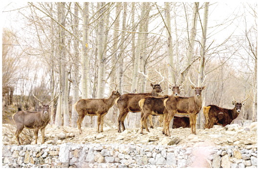 这是3月15日在西藏山南市乃东区结巴村拍摄的白唇鹿。