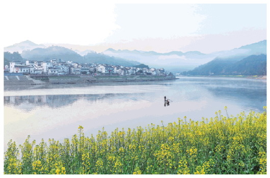 时下,安徽省黄山市歙县新安江畔油菜花绵延铺展,春意盎然。作为古徽州的母亲河,新安江滋养了一方土地,沿江两岸孕育出立体而丰盈的生态格局:山巅林海苍翠,山腰茶园如带,缓坡果树成林,水中鱼群悠游。春风拂过,碧水蜿蜒,新安江如同一幅流动的山水画卷,缓缓展开。 新华社发(施亚磊 摄)