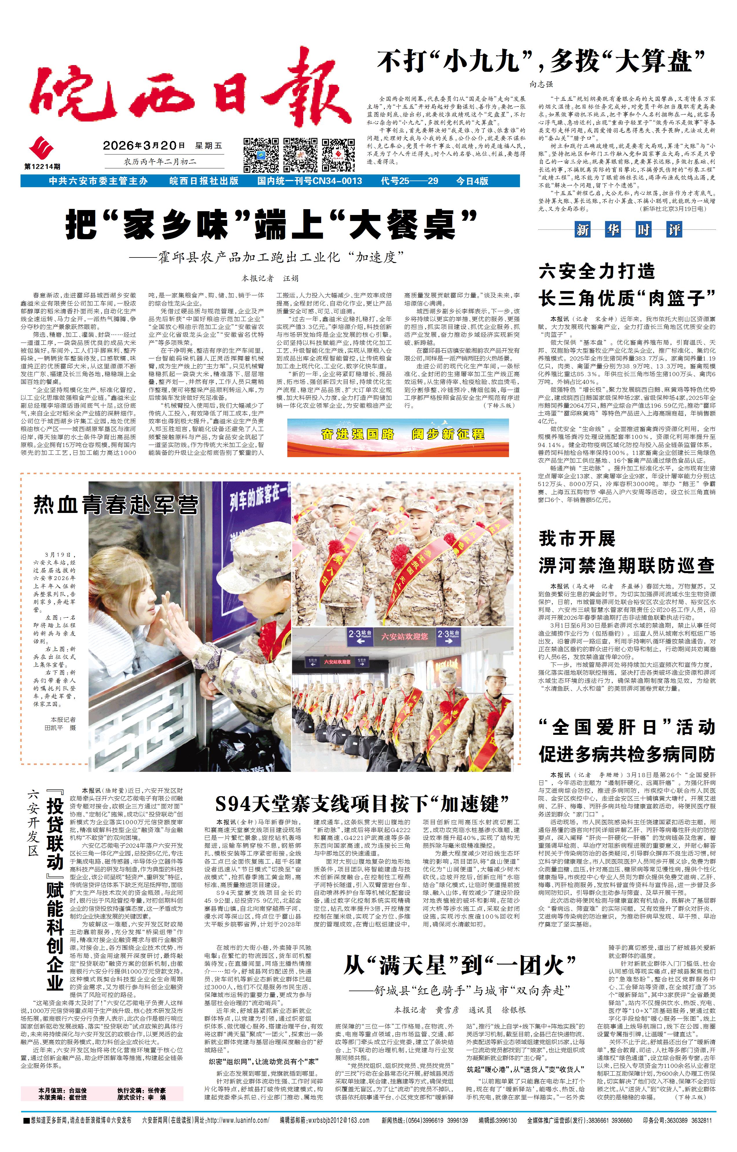 皖西日报 新闻    时间:2026年03月20日    来源:皖西日报