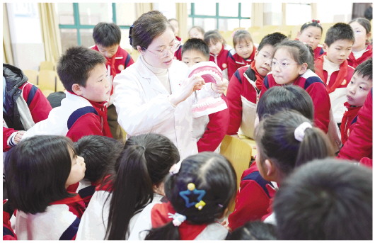 3月20日是“世界口腔健康日”。日前,六安市口腔医院的医护团队走进市人民路小学东校,开展口腔健康知识讲座,引导孩子们养成良好口腔卫生习惯。图为该院护士长孙先芳为孩子们讲解正确刷牙方法。