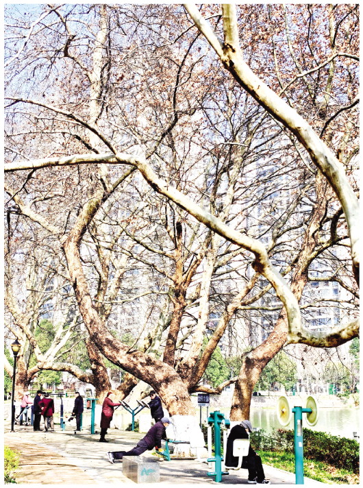 春日暖阳里,城区金水湾体育公园河畔健身区法桐林下成了市民们的“天然健身房”。不少市民在晴好天气走出家门,在舒展的悬铃木虬枝下,健身休闲,享受春日里的健康时光。